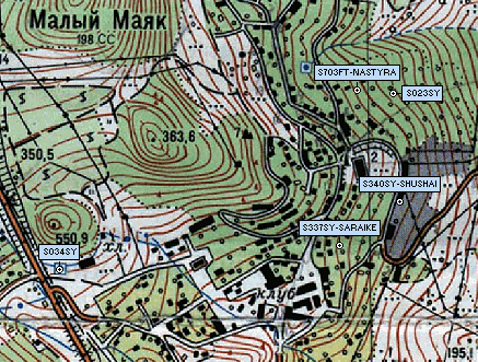 Попутно замечу про точку S034SY. Это большая санзона РЧВ и пр. на ЮВ склоне холма Такоца. Если от остановки "М.Маяк" спуститься на В вниз на ул.Почтовую(?), то встретится лоток, по которому идёт весенний сброс воды из РЧВ. На вкус отличная холодная вода! Хорошая альтернатива воде из фонтана ...