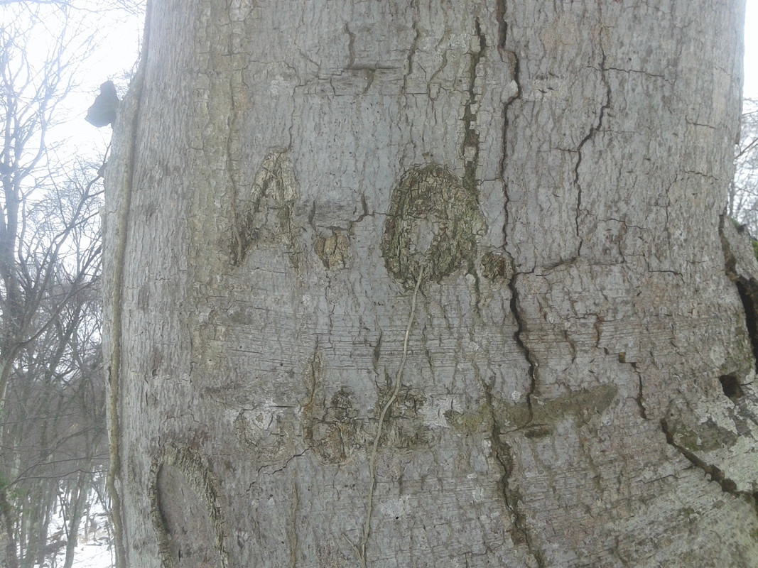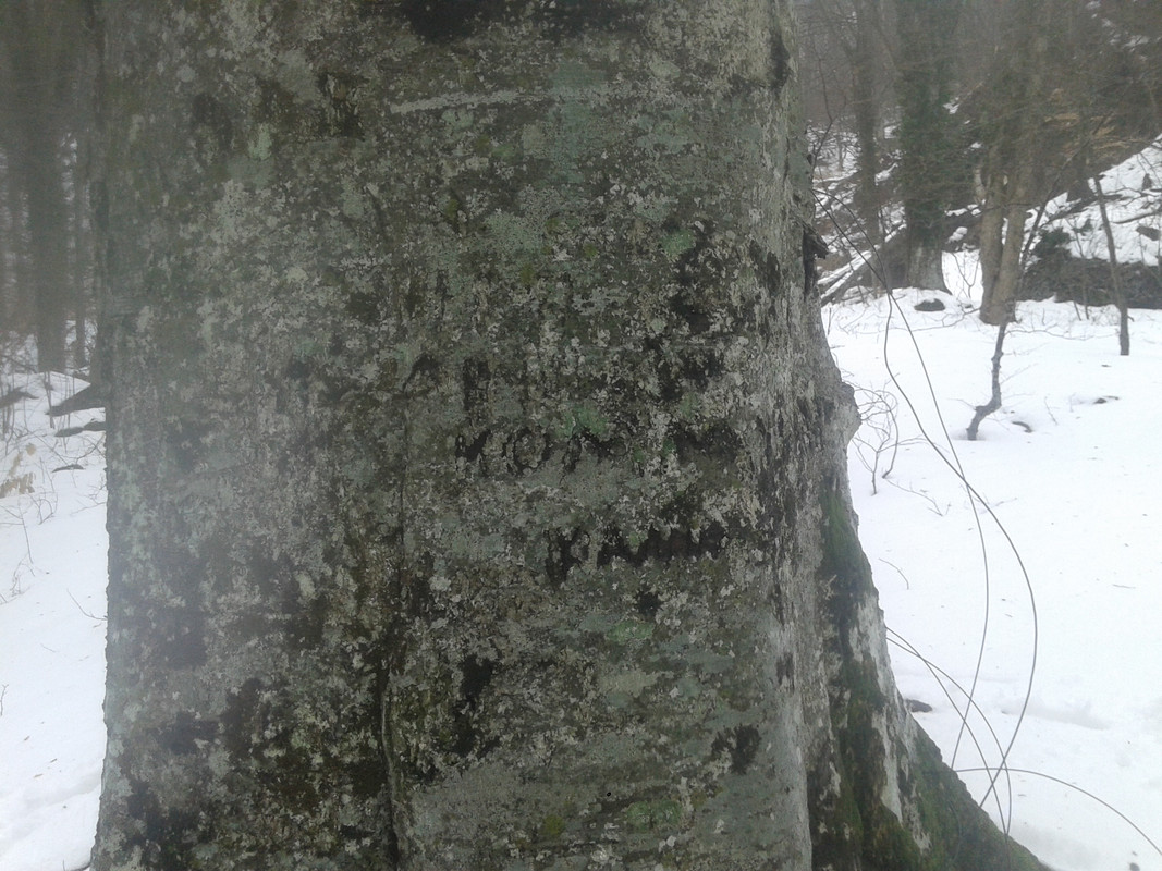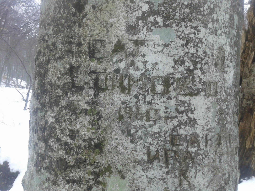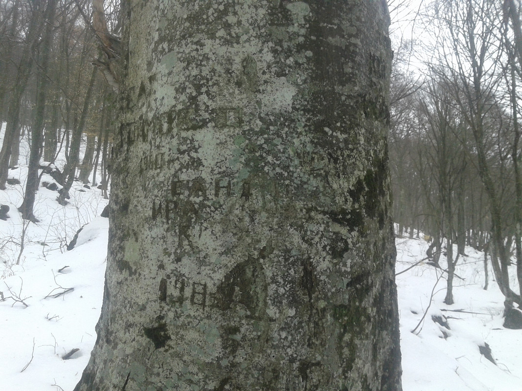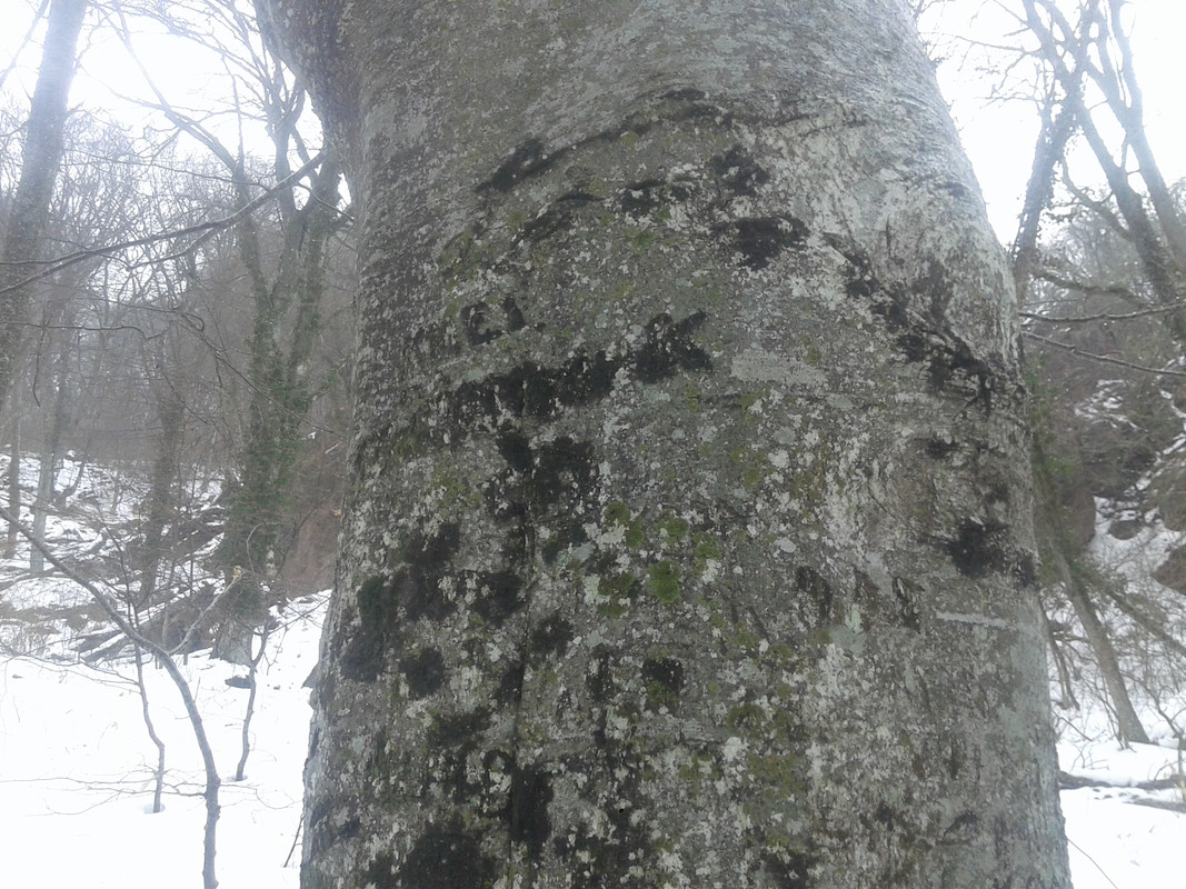 Из моего недавнего - Павло-чокрак. Три "надписи" на двух буках и они чуть выше и справа от основного выхода воды:
