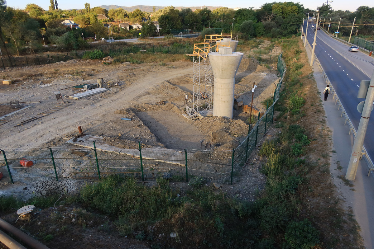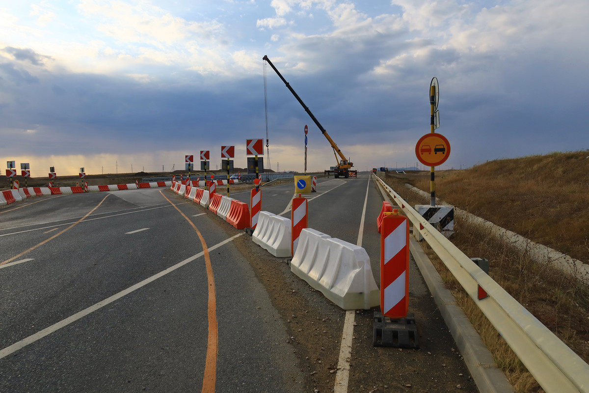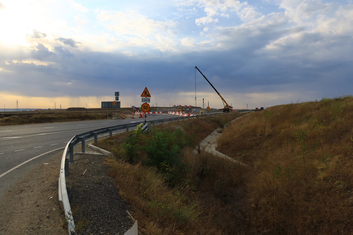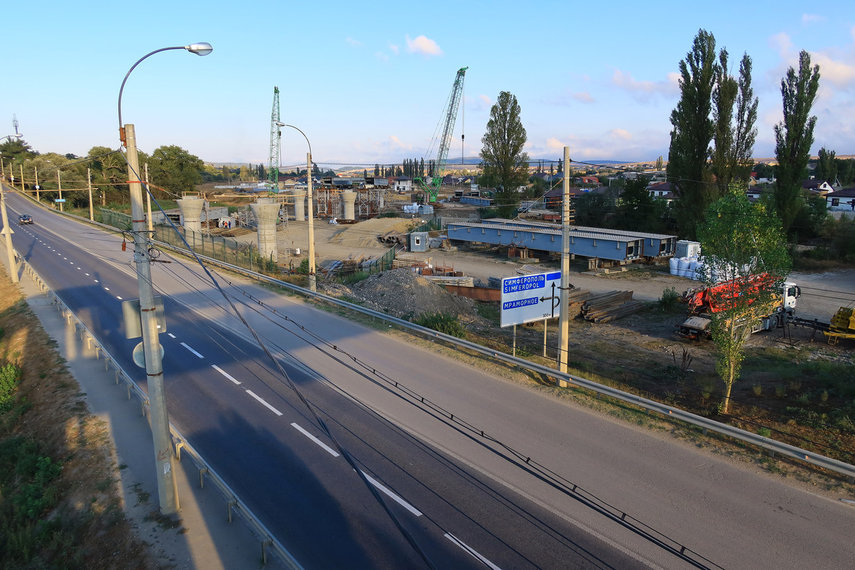 А вот возле этого  строящегося моста трасса сворачивает и обходит его по грунтовке.