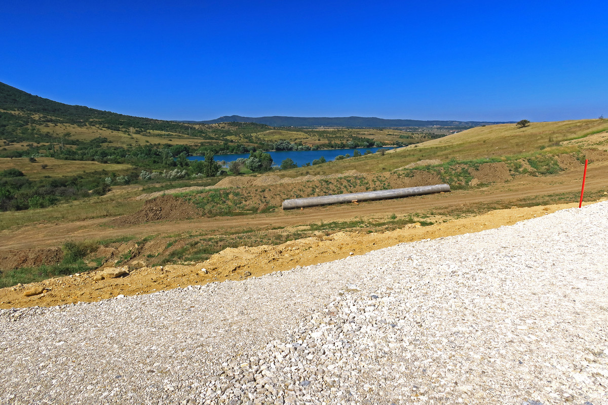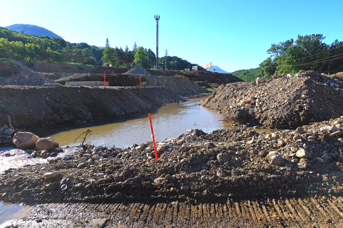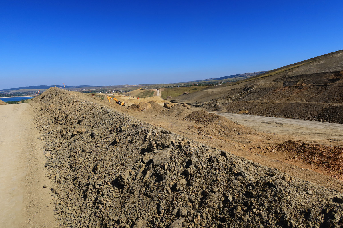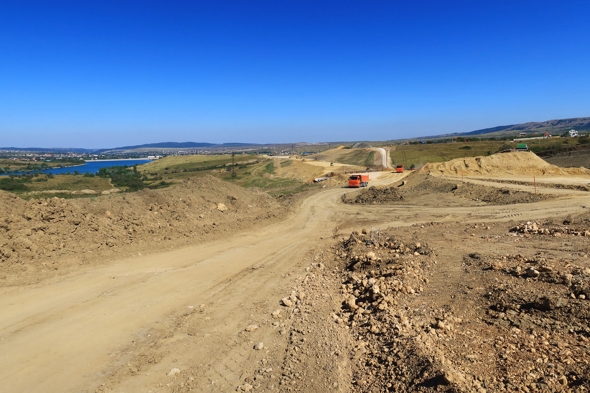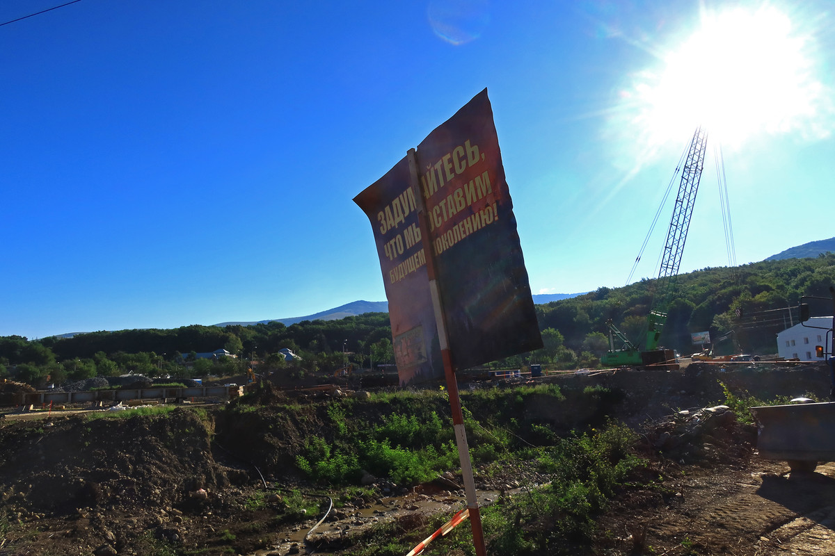 А вот возле этого  строящегося моста трасса сворачивает и обходит его по грунтовке.