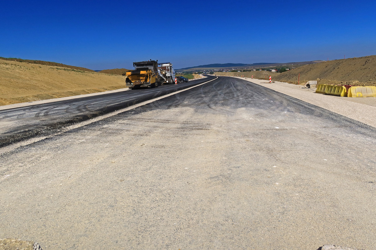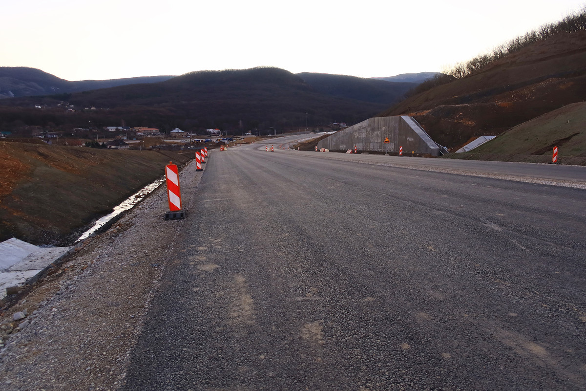 Примерно  в 3-х км до Заречного (ох, коряво выразился) уже уложен черновой слой асфальта.
