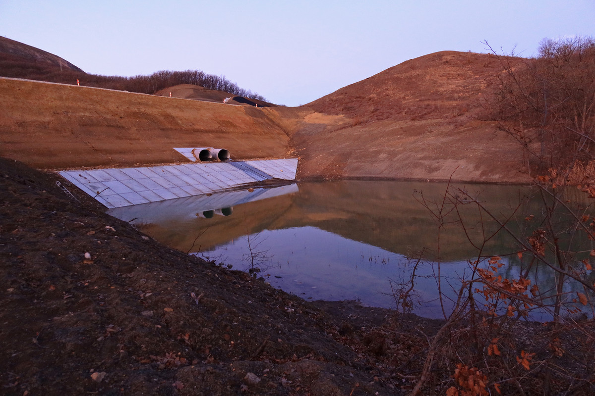 Возвращаюсь к развилке и мимо пруда подымаюсь на трассу.