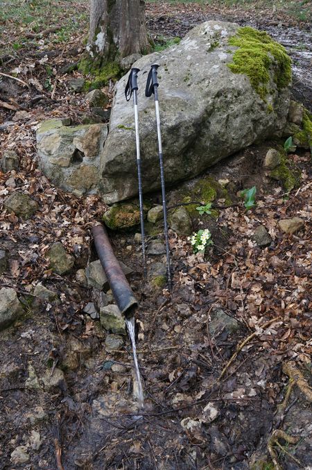 Если увеличить верстовку и присмотреться, то кажется, что значок "родник" там прорисован, что и облегчило поиск на местности: