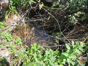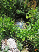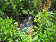 Выход, где когда-то торчала труба совсем заглох. Но чуть выше есть просачивание из-под осыпного склона.