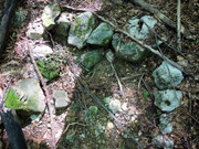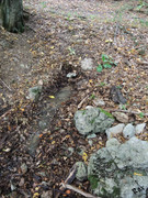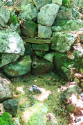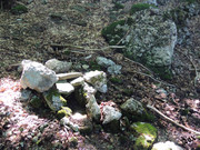 Метрах в 20 выше него, судя по промытому водотоку, похоже, был ещё один выход, обложенный камнями. Сейчас там сухо.