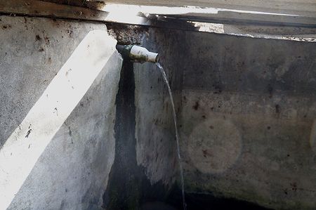 Сочится из-под каптажа, из трубы тока нет