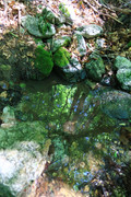 Вечером набрал воды с его многочисленных ручейков, обильно стекающих по замшелым камням. Утром проснулся, гляжу ..., а родник сухой! Мох влажный, поблёскивает, а воды нет. Что случилось? Кто "перекрыл" воду?