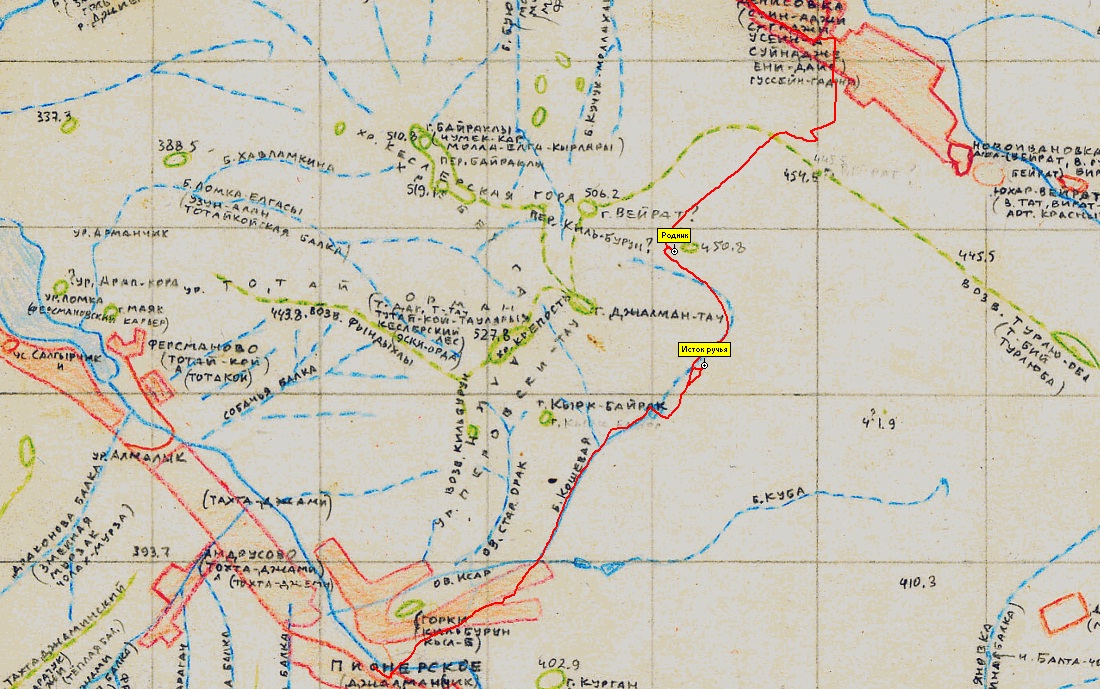 Правда, на карте И.Л. Белянского урочище Кумурлюк (Комурлух) обозначено несколько северо-восточнее, а сам родник не обозначен,