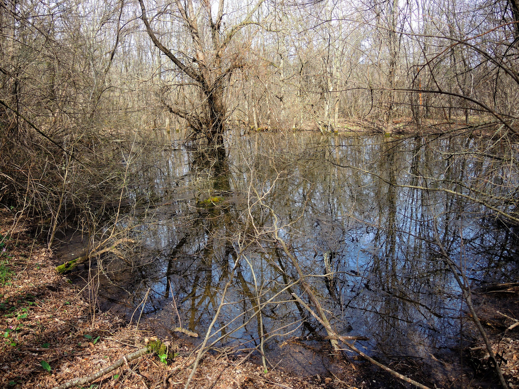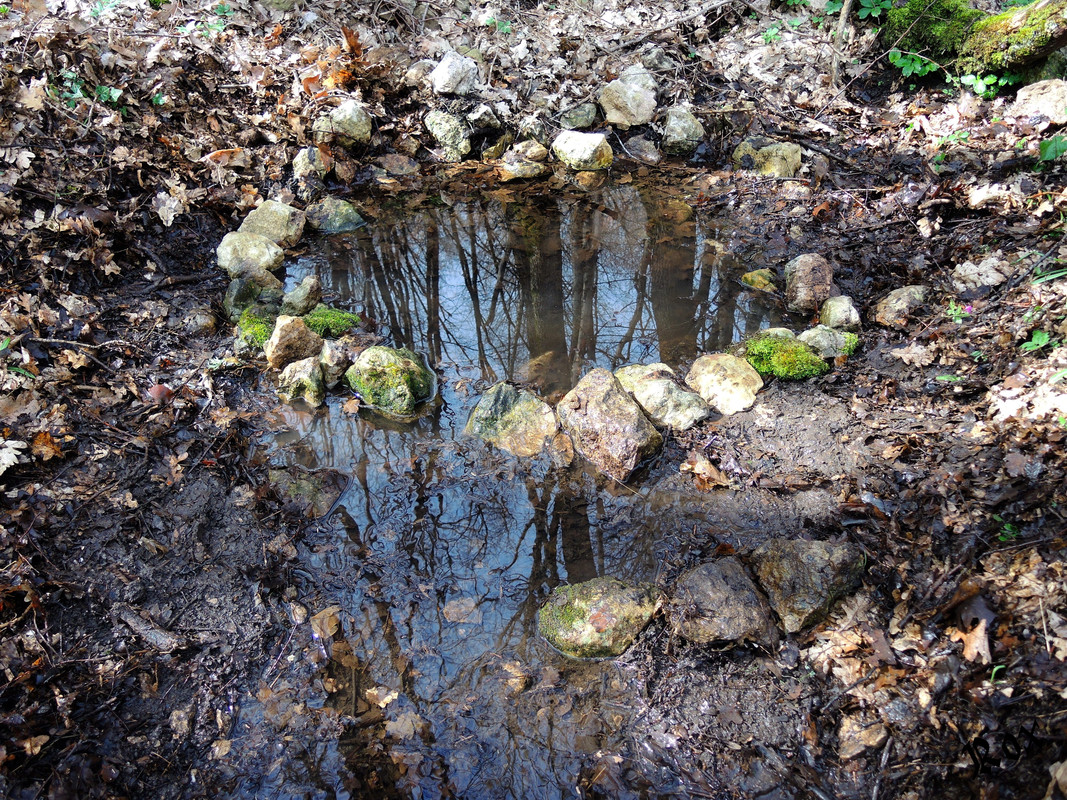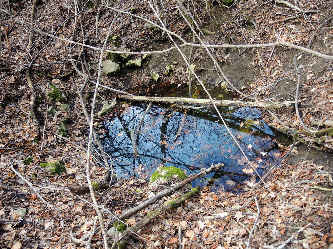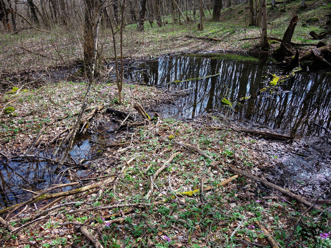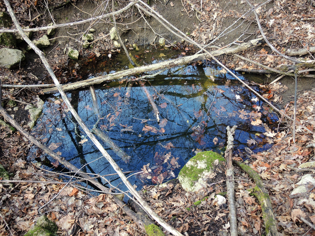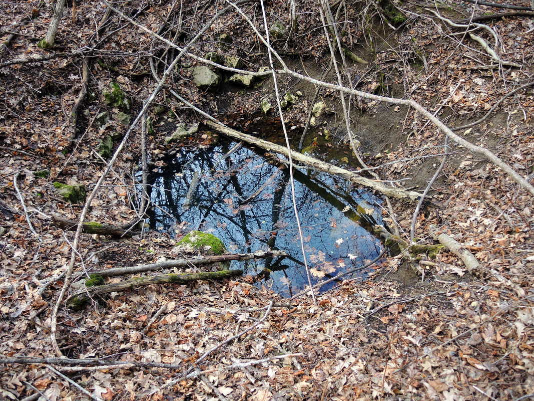 Родник когда-то был. Под ним была устроена земляная дамба и должен был получиться микро-водопой. Сейчас и родник и водопой занесены грунтом. Есть какой-то строительный мусор.