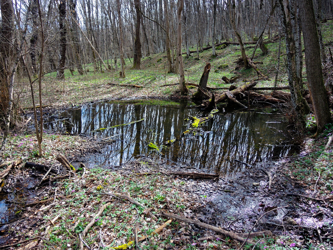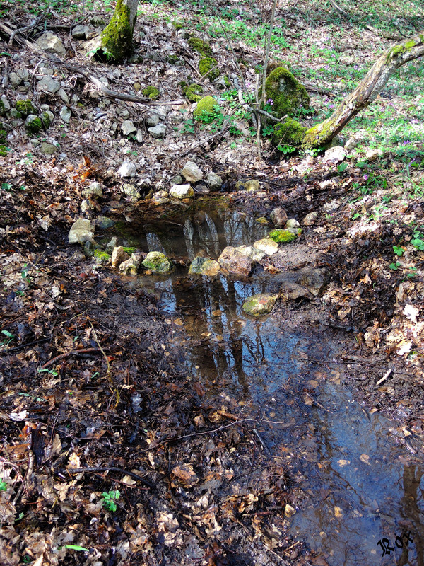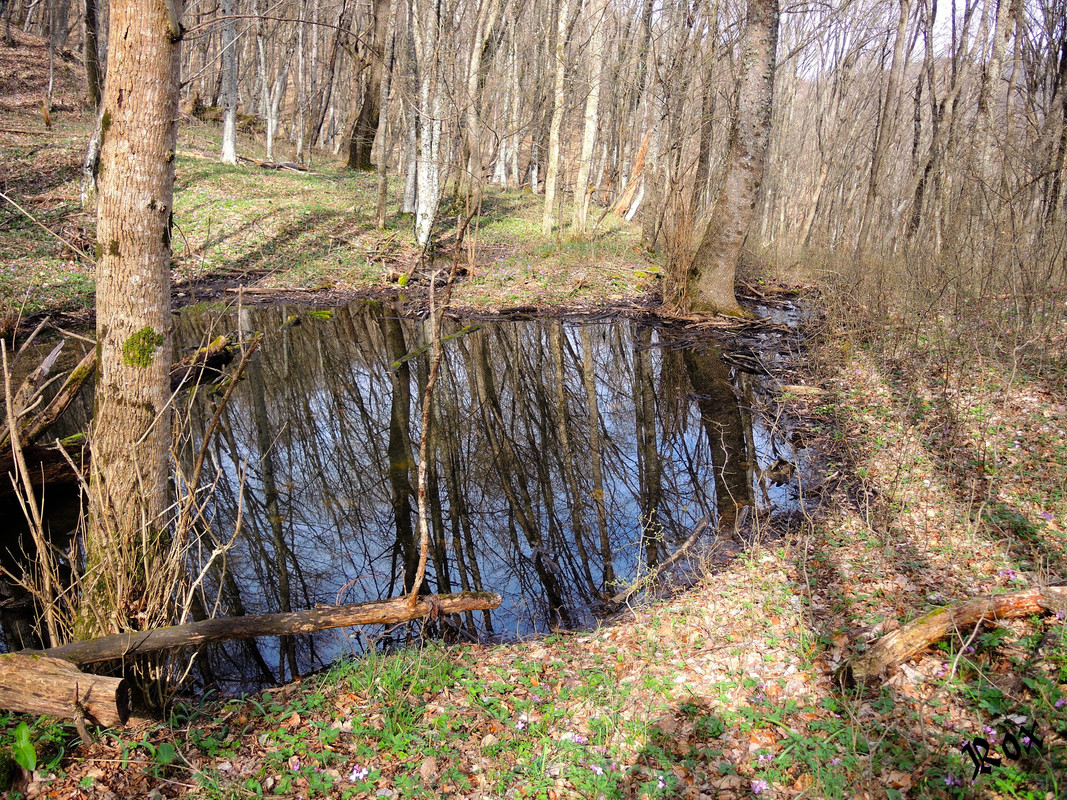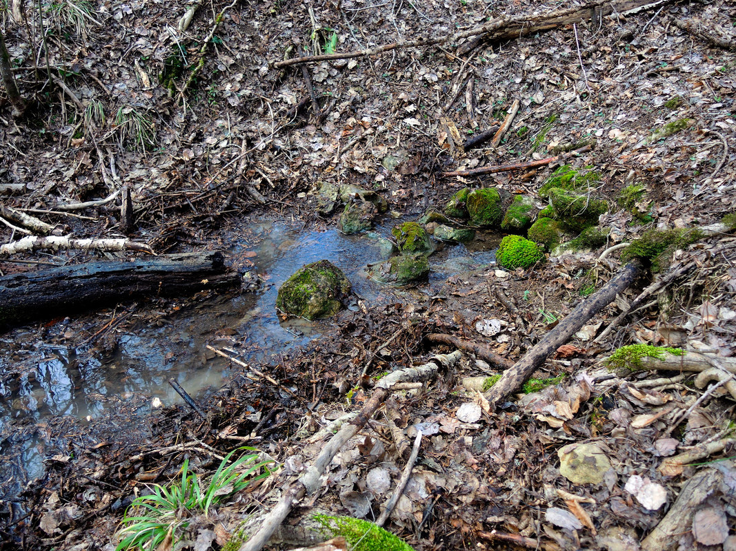 Водами источника пополняется озерцо, ручей из которого (по состоянию на конец марта) прослеживается на 200 м.