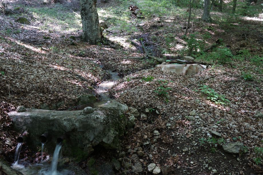 В реестре ПКВИ бассейна Демирджи есть источники Гурния 1 и 2. Их табличные номера очень близки номерам родников Кречь 1, 2, 3. Исходя из этого я когда-то решил, что они где-то очень рядом. Каптажи родников Кречь все знают. Но рядом есть выход воды в виде обширной мочажины. Я решил, что это и есть Гурния. Но тогда я не придал значению, что на Гурния-2 были случаи замера дебитов поплавком. Возможно, я ошибся с привязкой этого названия к той обильной мочажине и Гурния надо искать где-то ещё.