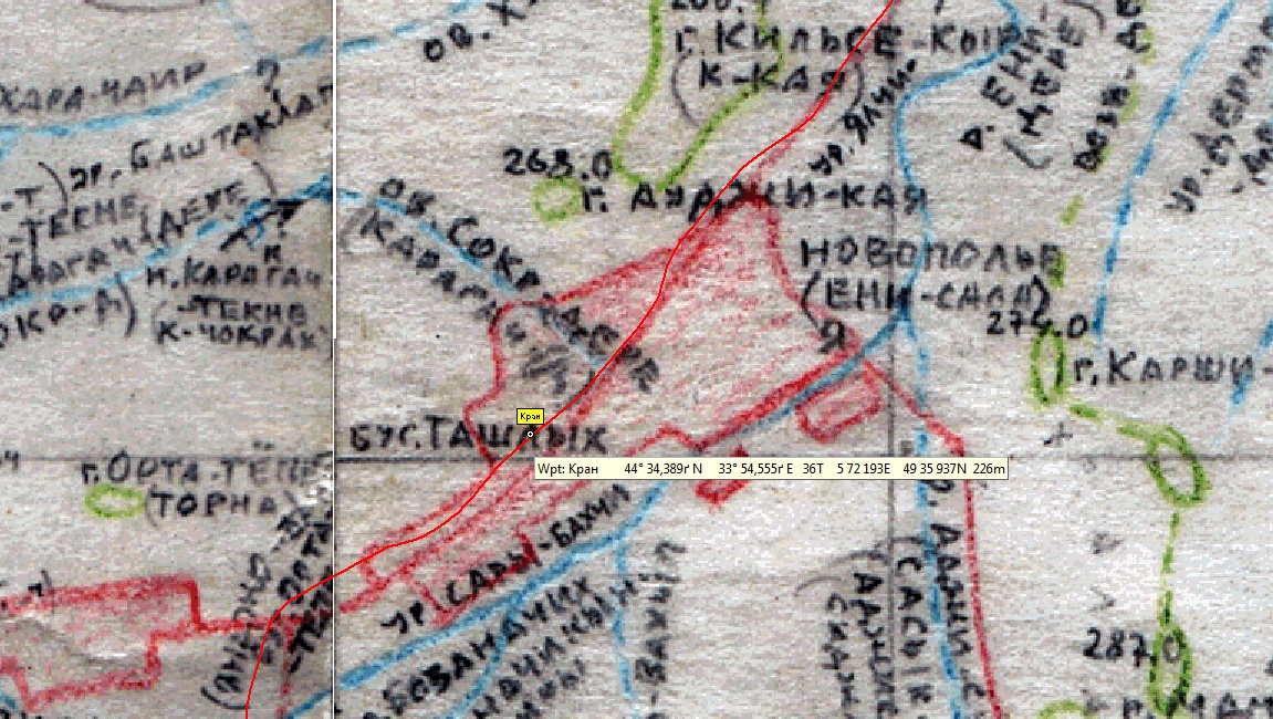 2) "Родн." с верстовки 1890-х годов: 44гр 57мин 41,9339сек / 35гр 0мин 18,7852сек / ~500 m