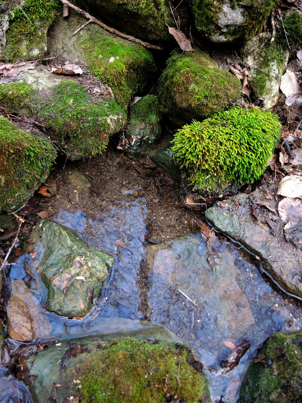 Очень живописный выход, представляет собой каменистую ванночку, ручей из которой стекает ниже по заросшим мхом валунам, образуя несколько небольших каскадов.