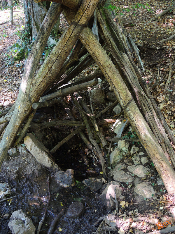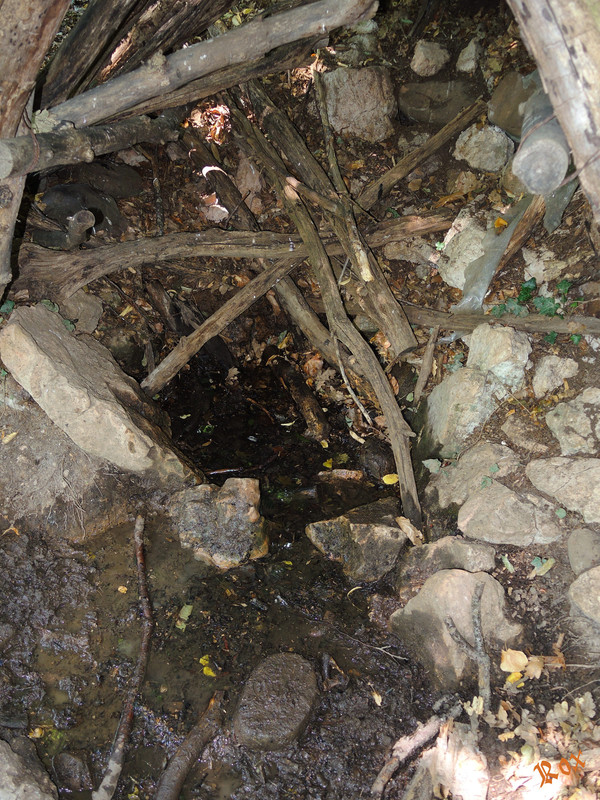 сейчас бревна и плёнка под ними прогнили, и родник очень сильно замусорен,