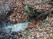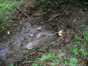 Выход из земляного склона, образует хороший, но затоптанный ручей, уходящий в сторону пруда на юге Молбая.