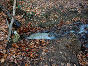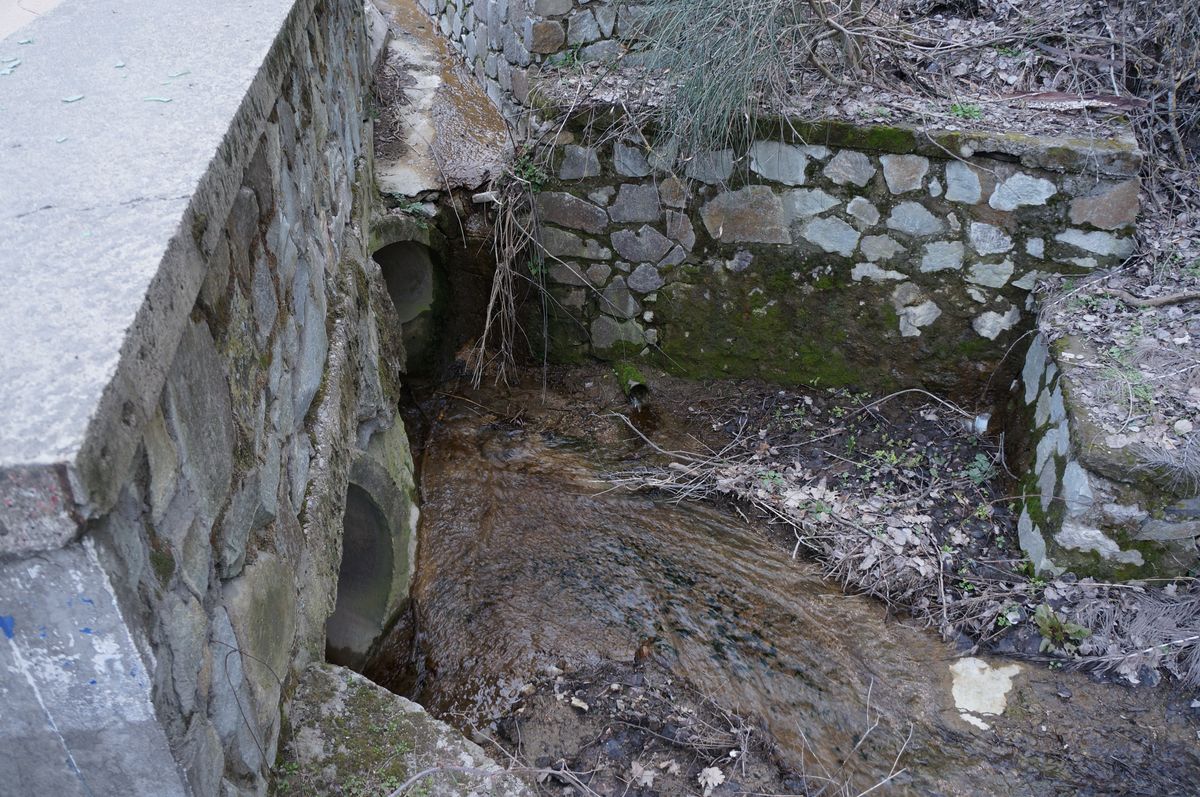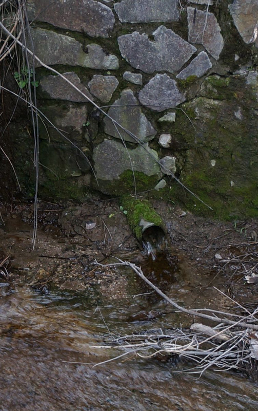 К роднику поднимался от дорожного уловителя. В подпорной стене этого аппендикса устроены трубы для пропуска родникового ручья. Уже дома на фотоснимке этого места заметил обрубок асбестоцементной трубы с вытекающей водой. Интересно, что это и какова сезонность?