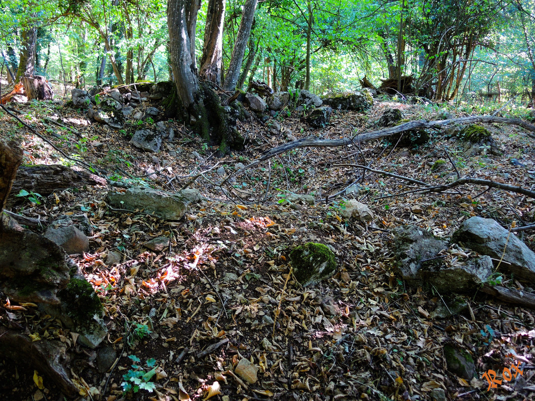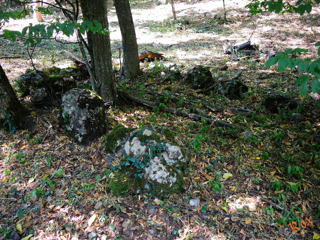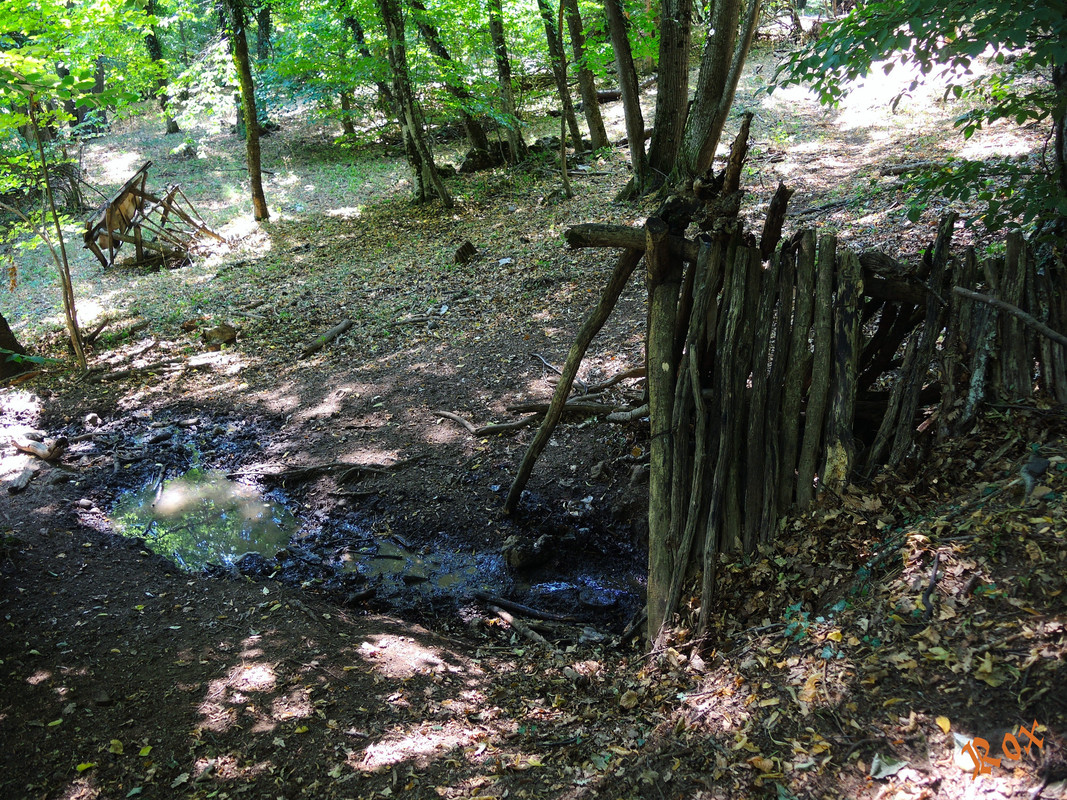 Рядом с родником поваленная кормушка, развалы каких-то небольших строений  - прямоугольный и круглый, последний возможно раскоп.