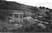 на одной из каменных глыб возвышалась скульптура оленя, чуть в стороне стояла круглая беседка с видом на море и окрестности;