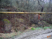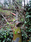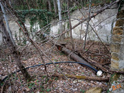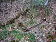В одном месте сохранились руины небольшого домика, через который проходит одна из больших старых труб.