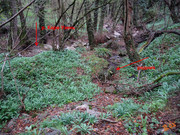 От беседки не осталось и следа, кроме (возможно) не явно выраженного округлого понижения среди шибляка.