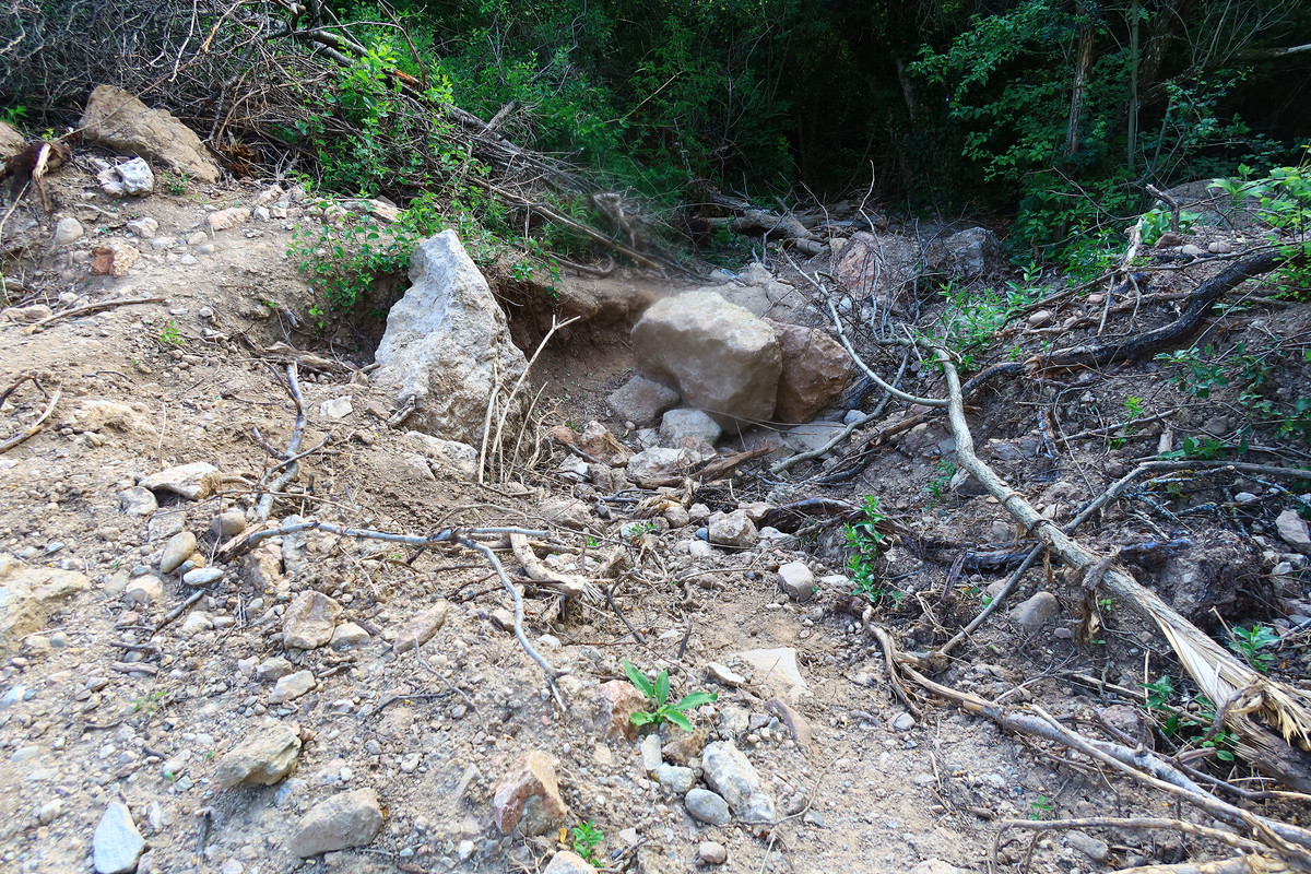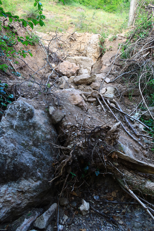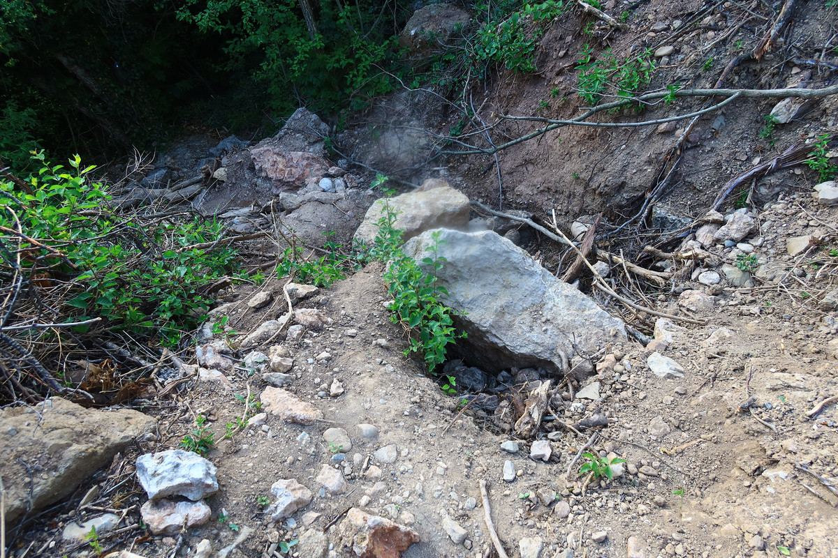 Родник намеренно уничтожен, завален глыбами, на склоне сверху от него следов падения нет. Местные говорят, что работали бульдозеры. Произошло это месяца два назад. Фото родника прилагаю, сделал сегодня. По нему, конечно, непонятно, что там раньше был родник, но тем не менее.