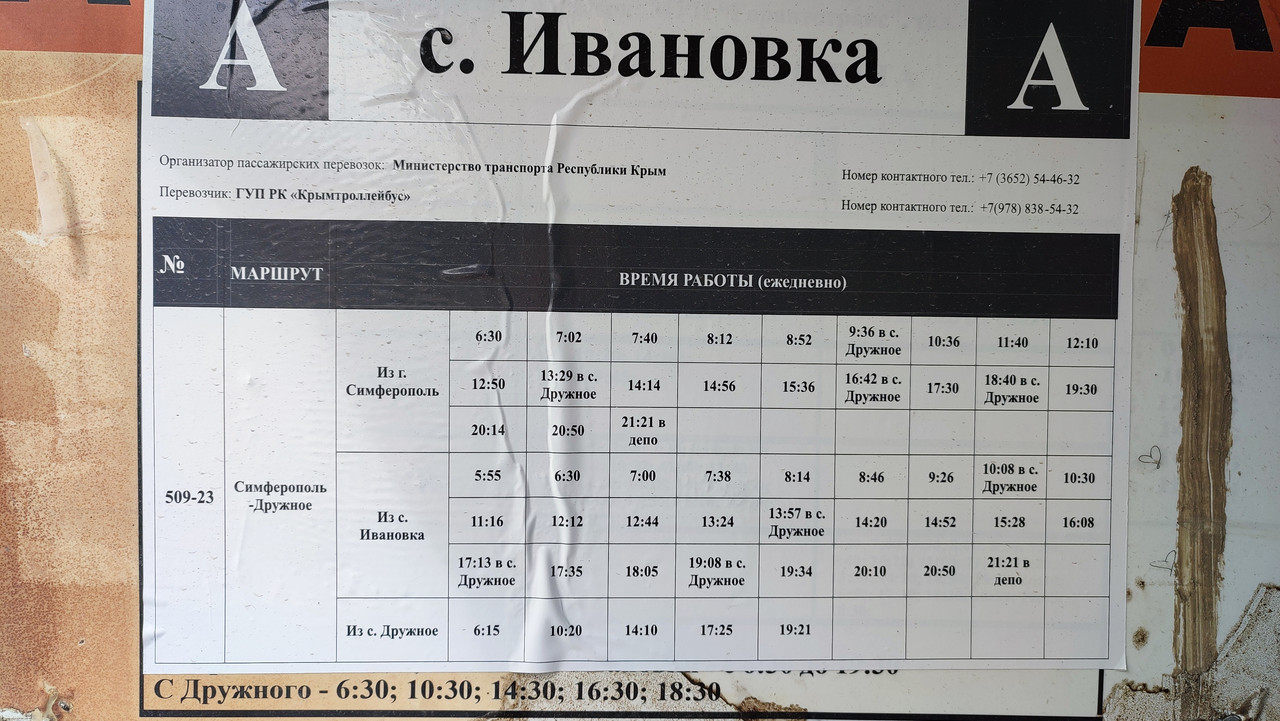 Расписание автобуса от остановки автобуса на повороте с трассы в Белогорске  в сторону Приветного (Головановки, Алексеевки...)