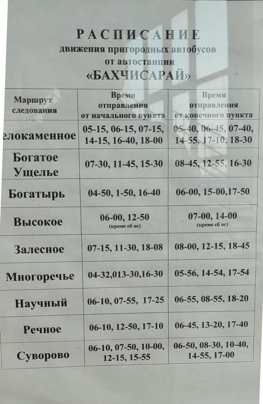 Бахчисарай - Богатое Ущелье (Поляна) - 07:30,